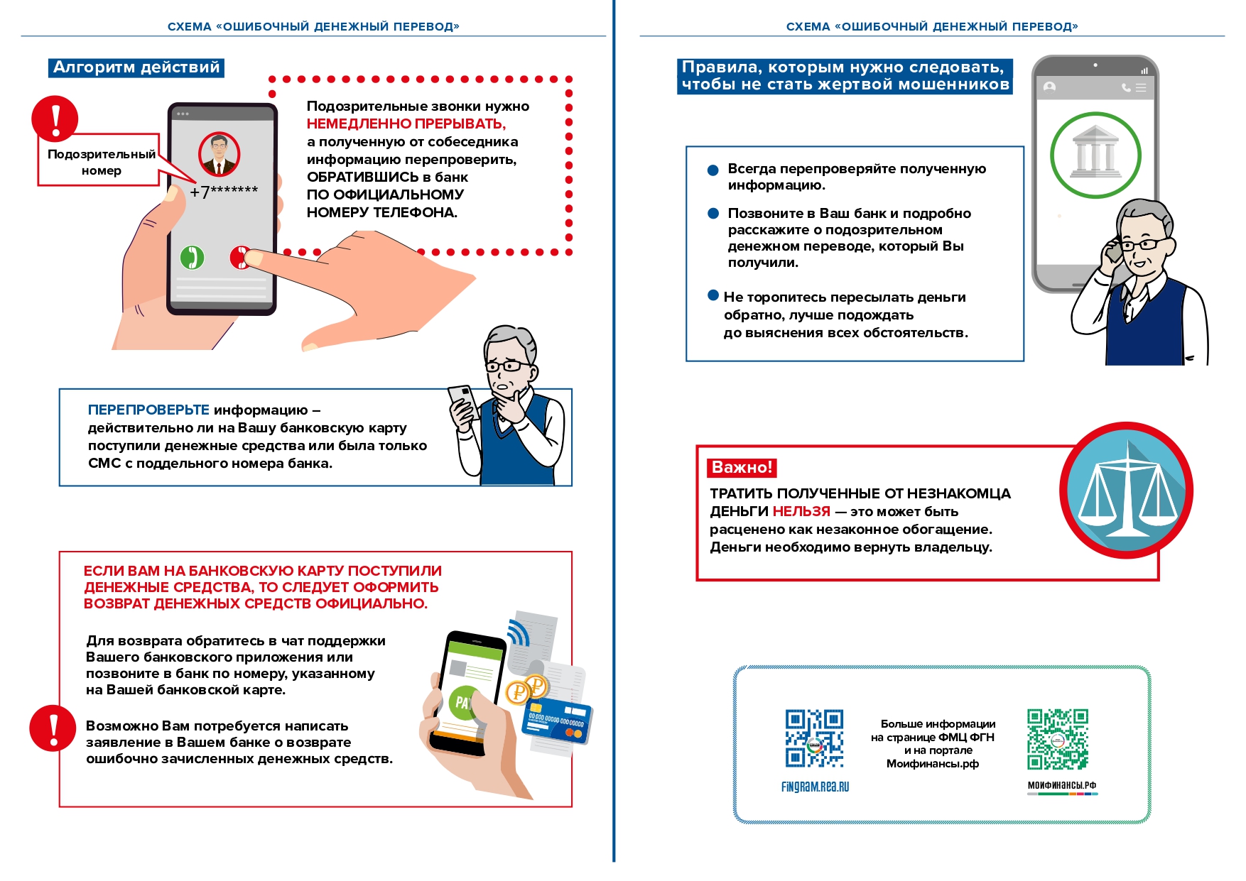 Делимся материалами, разработанными федеральным методическим центром финансовой грамотности РЭУ им. Г.В. Плеханова по заказу Минфина России о том, как защиться от телефонного мошенничества и других рисков потери денег, а также карточки, информирующие об основных мошеннических схемах